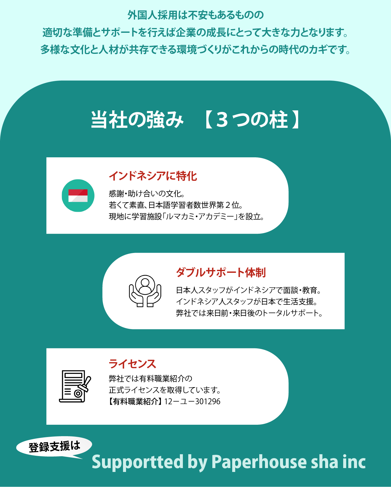 日本の現場で「明るく前向きに」「仲間と協力しながら」働くことができる人材をご紹介します